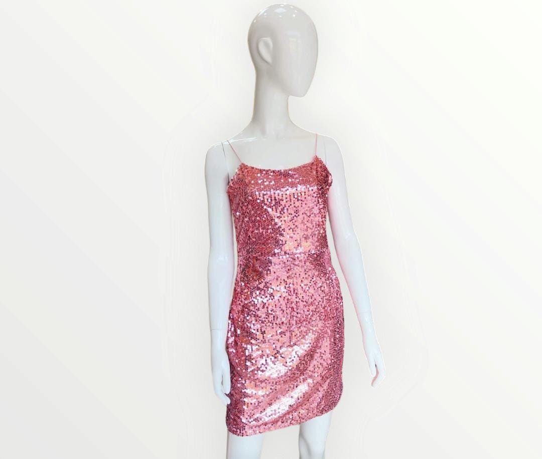 Vestido corto de lentejuelas es una opción ideal para eventos más informales o fiestas donde quieras lucir con un toque de brillo y estilo. Este vestido se ajusta a tu silueta, lo que te hace destacar en la multitud. Con cierre de cremallera lateral que lo hace muy discreto. Puedes encontrarlos en color rosado, rojo, negro y dorado, así que asegúrate de elegir uno que se adapte a tu estilo y la ocasión en la que planeas usarlo.